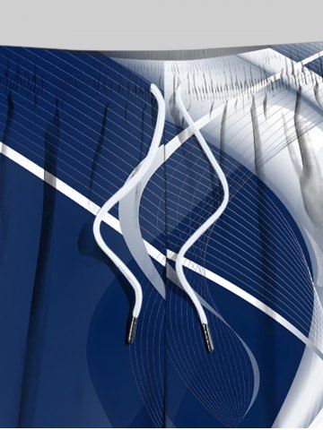 Plus Size Curve Ombre Light Beam Print Hawaii Drawstring Beach Shorts For Men - Navy Blue - 7xl