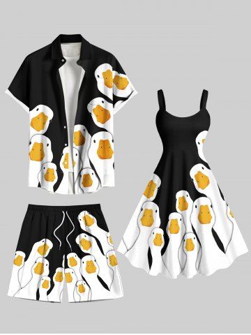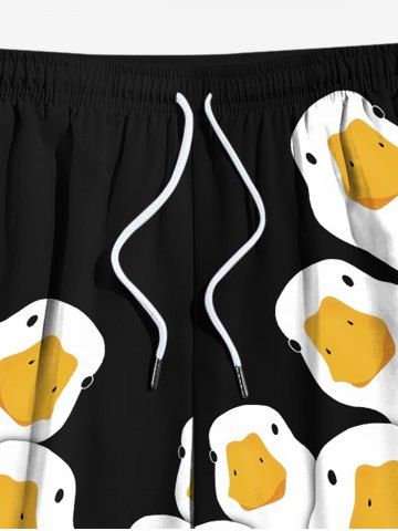 Plus Size Cute Goose Print Hawaii Drawstring Beach Shorts For Men - Black - 5xl