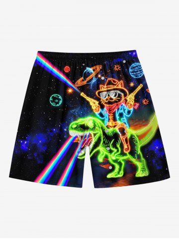 Plus Size Dinosaur Cat Planet Galaxy Print Hawaii Drawstring Beach Shorts For Men - Black - 2xl