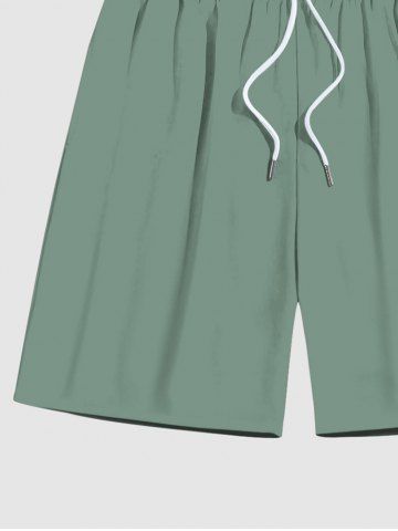 Plus Size Drawstring Solid Beach Shorts For Men - Green - 5xl
