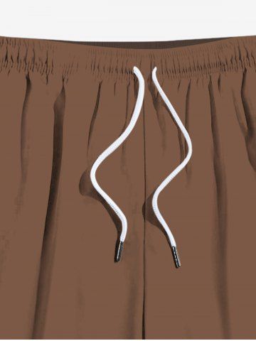 Plus Size Drawstring Solid Beach Shorts For Men - Deep Coffee - M