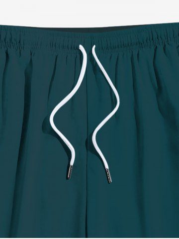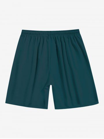 Plus Size Drawstring Solid Hawaii Beach Shorts For Men - Deep Green - M