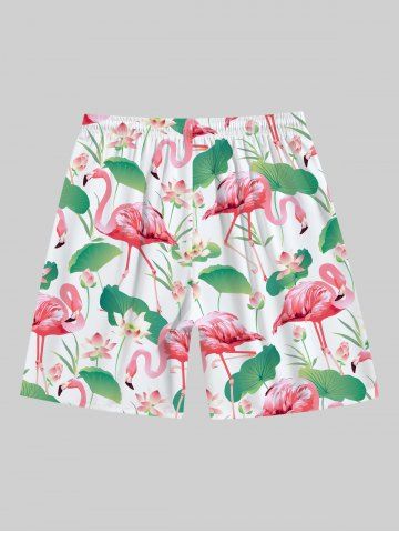 Shorts > Plus Size Flamingo Lotus Flower Leaf Print Hawaii Drawstring Beach Shorts For Men