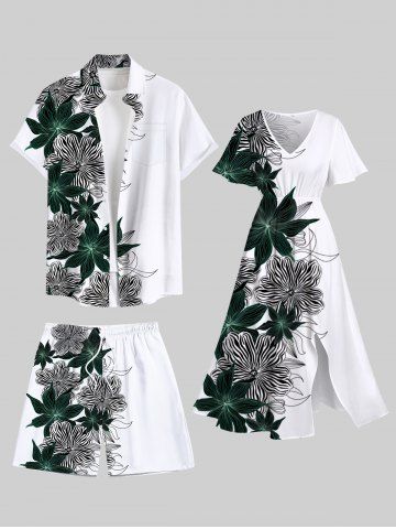 Plus Size Floral Leaves Print Hawaii Drawstring Beach Shorts For Men - White - 7xl
