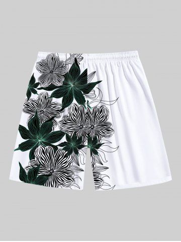 Plus Size Floral Leaves Print Hawaii Drawstring Beach Shorts For Men - White - 8xl