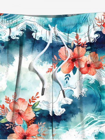Shorts > Plus Size Flower Ombre Sea Waves Print Hawaii Drawstring Beach Shorts For Men
