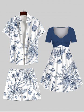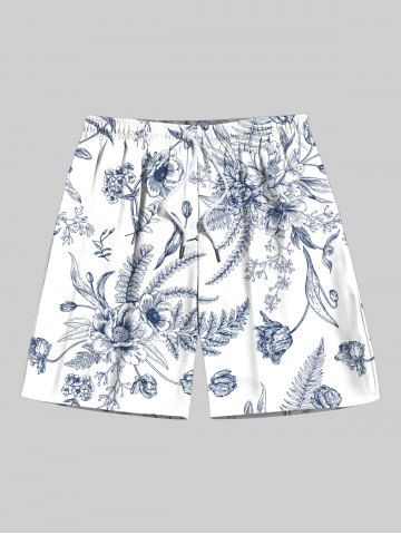 Plus Size Floral Tropical Leaves Print Hawaii Drawstring Beach Shorts For Men - White - 4xl