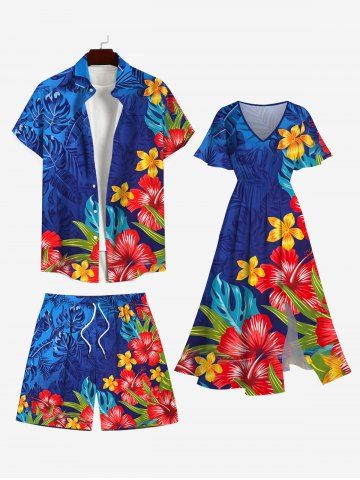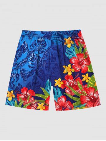 Plus Size Floral Tropical Leaves Print Hawaii Ombre Drawstring Beach Shorts For Men - Blue - 6xl