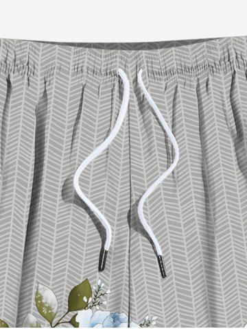 Plus Size Flower Branch Textured Print Hawaii Drawstring Pocket Beach Shorts For Men - Dark Gray - M