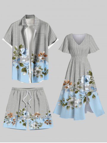 Plus Size Flower Branch Textured Print Hawaii Drawstring Pocket Beach Shorts For Men - Dark Gray - 3xl