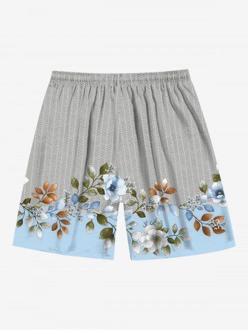 Shorts > Plus Size Flower Branch Textured Print Hawaii Drawstring Pocket Beach Shorts For Men