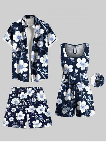 Shorts > Plus Size Flower Leaf Branch Print Hawaii Drawstring Pocket Beach Shorts For Men