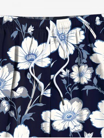 Shorts > Plus Size Flower Leaf Branch Print Hawaii Drawstring Pocket Beach Shorts For Men