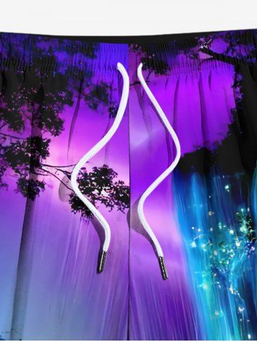 Plus Size Glitter Ombre Galaxy Fall Tree Print Hawaii Drawstring Beach Shorts For Men - Black - 4xl