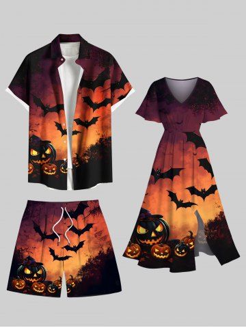 Shorts > Plus Size Halloween Pumpkin Bat Moon Print Beach Shorts For Men