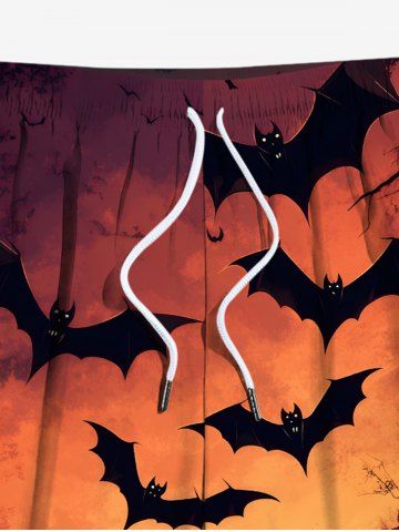 Plus Size Halloween Pumpkin Bat Moon Print Beach Shorts For Men - Dark Orange - 7xl