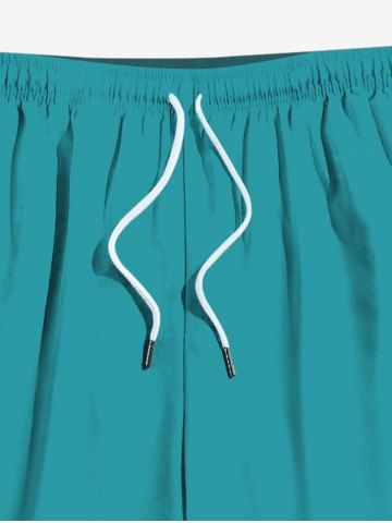 Plus Size Hawaii Solid Drawstring Beach Shorts For Men - Green - 7xl