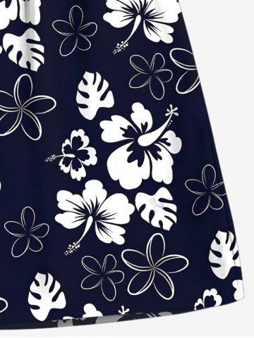 Plus Size Hibiscus Flower Print Hawaii Drawstring Beach Shorts For Men - Black - M