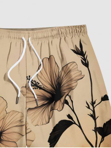 Plus Size Hibiscus Flower Ombre Sunset Print Hawaii Drawstring Pocket Beach Shorts For Men - Apricot - 2xl