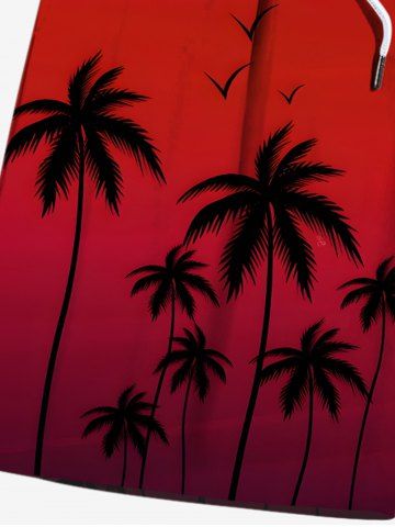Plus Size Ink Painting Coconut Tree Ombre Print Hawaii Drawstring Pocket Beach Shorts For Men - Red - L