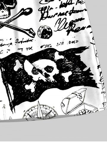 Plus Size Ink Painting Skull Pirate Sailboat Anchor Letters Print Hawaii Cruise Drawstring Beach Shorts For Men - White - 3xl