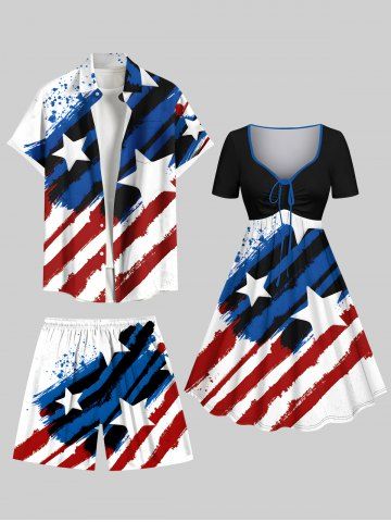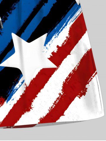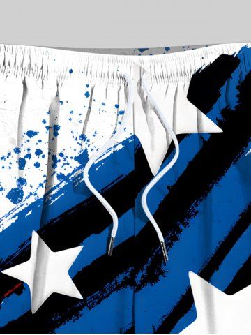 Plus Size Ink Painting Splatter Patriotic American Flag Print Drawstring Beach Shorts For Men - White - 8xl