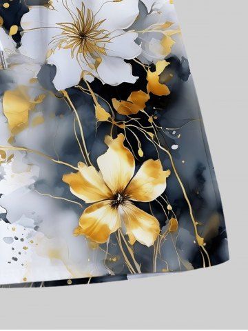 Plus Size Ink Painting Tie Dye Hibiscus Flower Print Hawaii Drawstring Pocket Beach Shorts For Men - Black - 7xl
