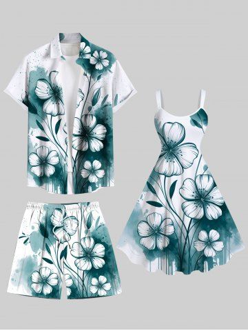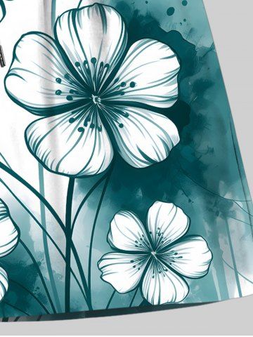 Plus Size Ink Painting Watercolor Flower Print Hawaii Drawstring Beach Shorts For Men - Green - 6xl