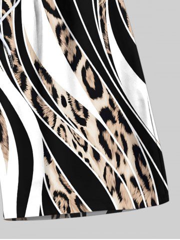 Plus Size Leopard Curve Colorblock Print Hawaii Drawstring Beach Shorts For Men - Black - 5xl