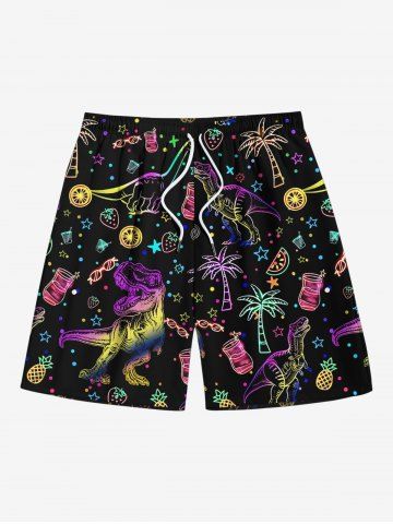 Plus Size Ombre Coconut Tree Dinosaur Watermelon Juice Print Hawaii Drawstring Beach Shorts For Men - Black - L