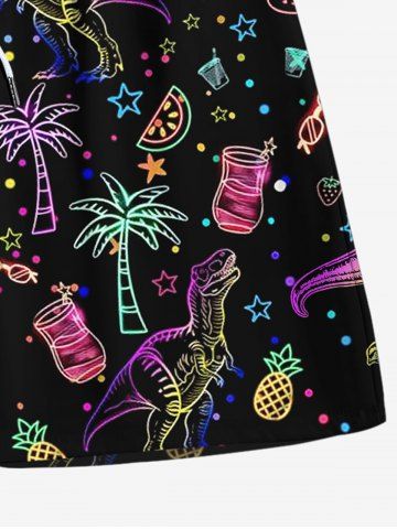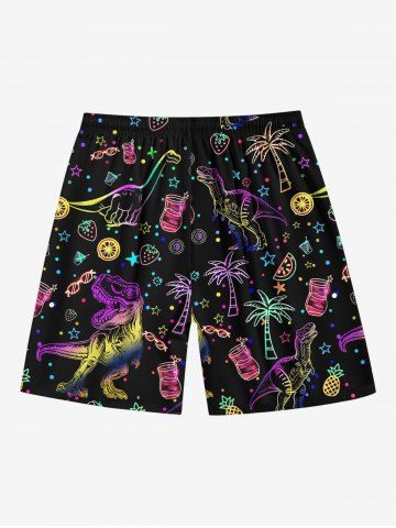 Plus Size Ombre Coconut Tree Dinosaur Watermelon Juice Print Hawaii Drawstring Beach Shorts For Men - Black - Xl