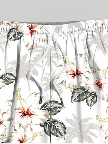 Plus Size Ombre Coconut Tree Hibiscus Flower Leaf Print Hawaii Drawstring Beach Shorts For Men - White - 6xl