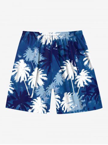 Plus Size Ombre Coconut Tree Print Hawaii Drawstring Beach Shorts For Men - Blue - L