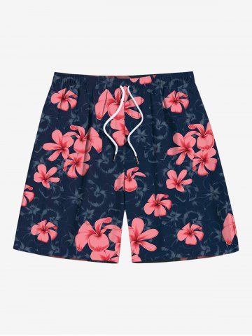 Plus Size Ombre Floral Print Hawaii Drawstring Beach Shorts For Men - Midnight Blue - 5xl