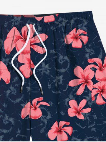 Plus Size Ombre Floral Print Hawaii Drawstring Beach Shorts For Men - Midnight Blue - 7xl