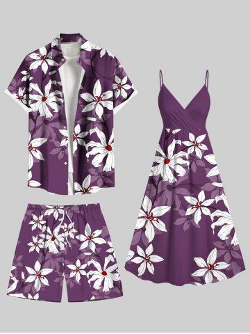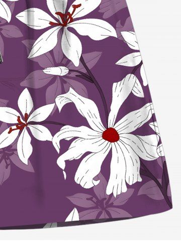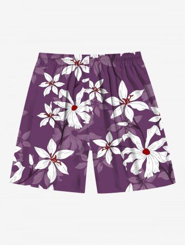Plus Size Ombre Flower Print Hawaii Drawstring Beach Shorts For Men - Purple - 6xl