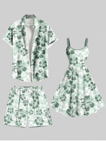 Plus Size Ombre Hibiscus Flower Print Hawaii Drawstring Pocket Beach Shorts For Men - Light Green - 8xl