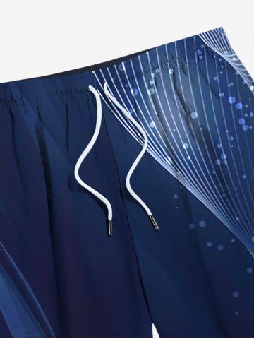 Plus Size Ombre Light Beam Bubble Curve Print Hawaii Drawstring Beach Shorts For Men - Midnight Blue - 2xl