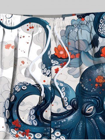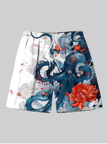 Shorts > Plus Size Ombre Octopus Flower Print Hawaii Drawstring Beach Shorts For Men