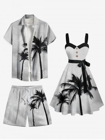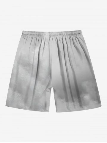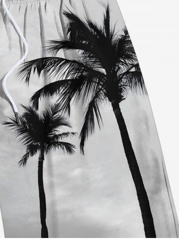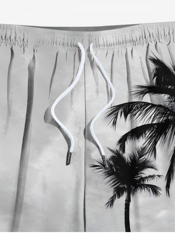 Plus Size Ombre Sky Coconut Tree Print Hawaii Drawstring Beach Shorts For Men - Gray - 7xl