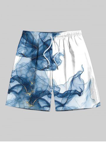 Plus Size Ombre Smoke Print Hawaii Drawstring Beach Shorts For Men - Blue - 3xl