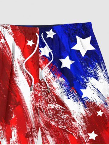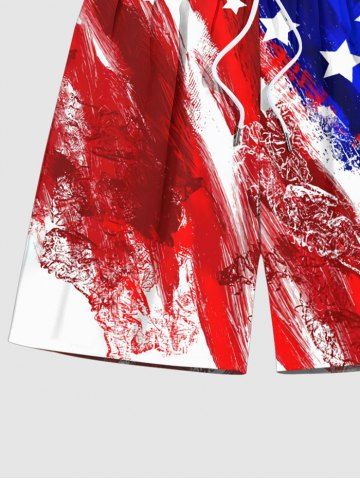 Plus Size Painting Patriotic American Flag Print Drawstring Beach Shorts For Men - Red - 2xl
