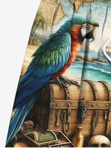 Shorts > Plus Size Parrot Sea Sailboat Jewelry Skull Print Hawaii Drawstring Beach Shorts For Men