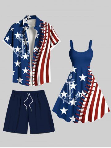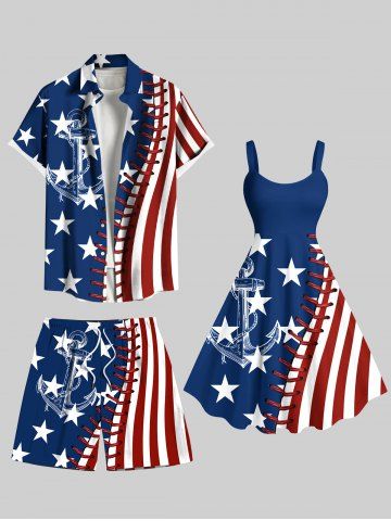 Shorts > Plus Size Patriotic American Flag Anchor 3D Topstitching Print Hawaii Cruise Drawstring Beach Shorts For Men