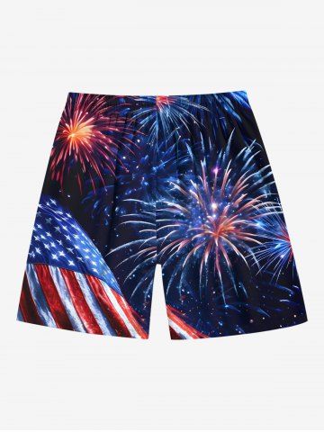 Shorts > Plus Size Patriotic American Flag Fireworks Galaxy Print Drawstring Beach Shorts For Men