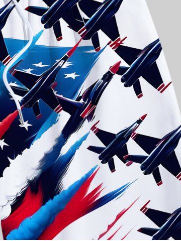Shorts > Plus Size Patriotic American Flag Plane Print Drawstring Pocket Beach Shorts For Men