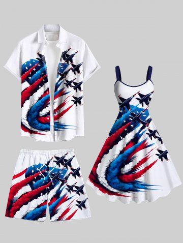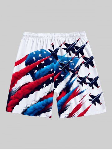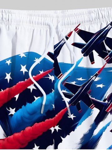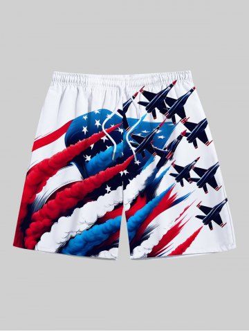 Plus Size Patriotic American Flag Plane Print Drawstring Pocket Beach Shorts For Men - Crystal Cream - 2xl