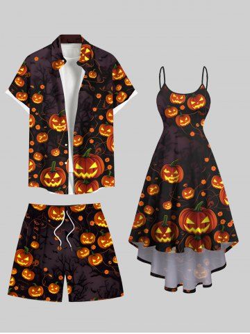 Shorts > Plus Size Pumpkin Lantern Branch Print Halloween Drawstring Pocket Beach Shorts For Men