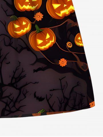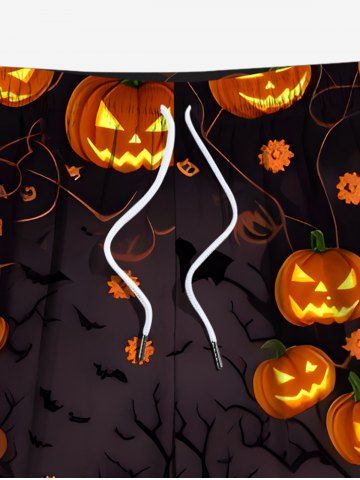 Plus Size Pumpkin Lantern Branch Print Halloween Drawstring Pocket Beach Shorts For Men - Black - 3xl