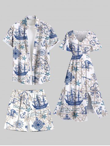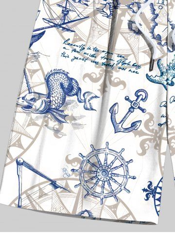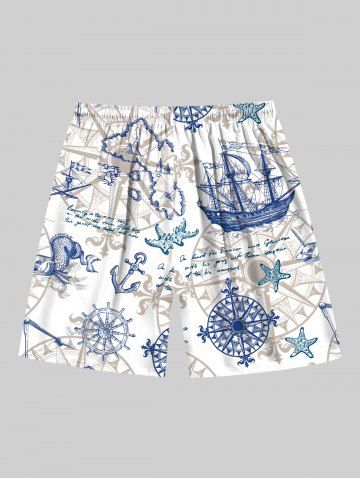 Plus Size Sailboat Starfish Anchor Steering Wheel Print Hawaii Cruise Drawstring Beach Shorts For Men - White - 3xl